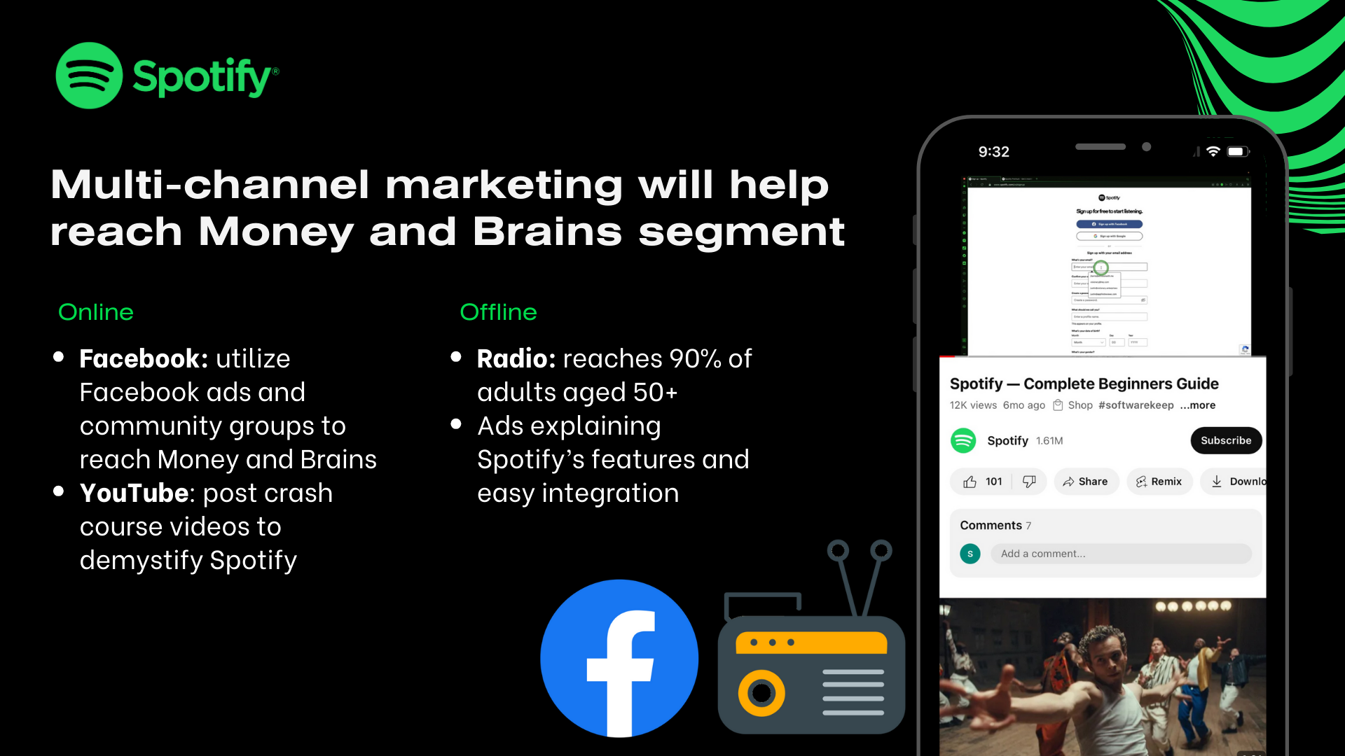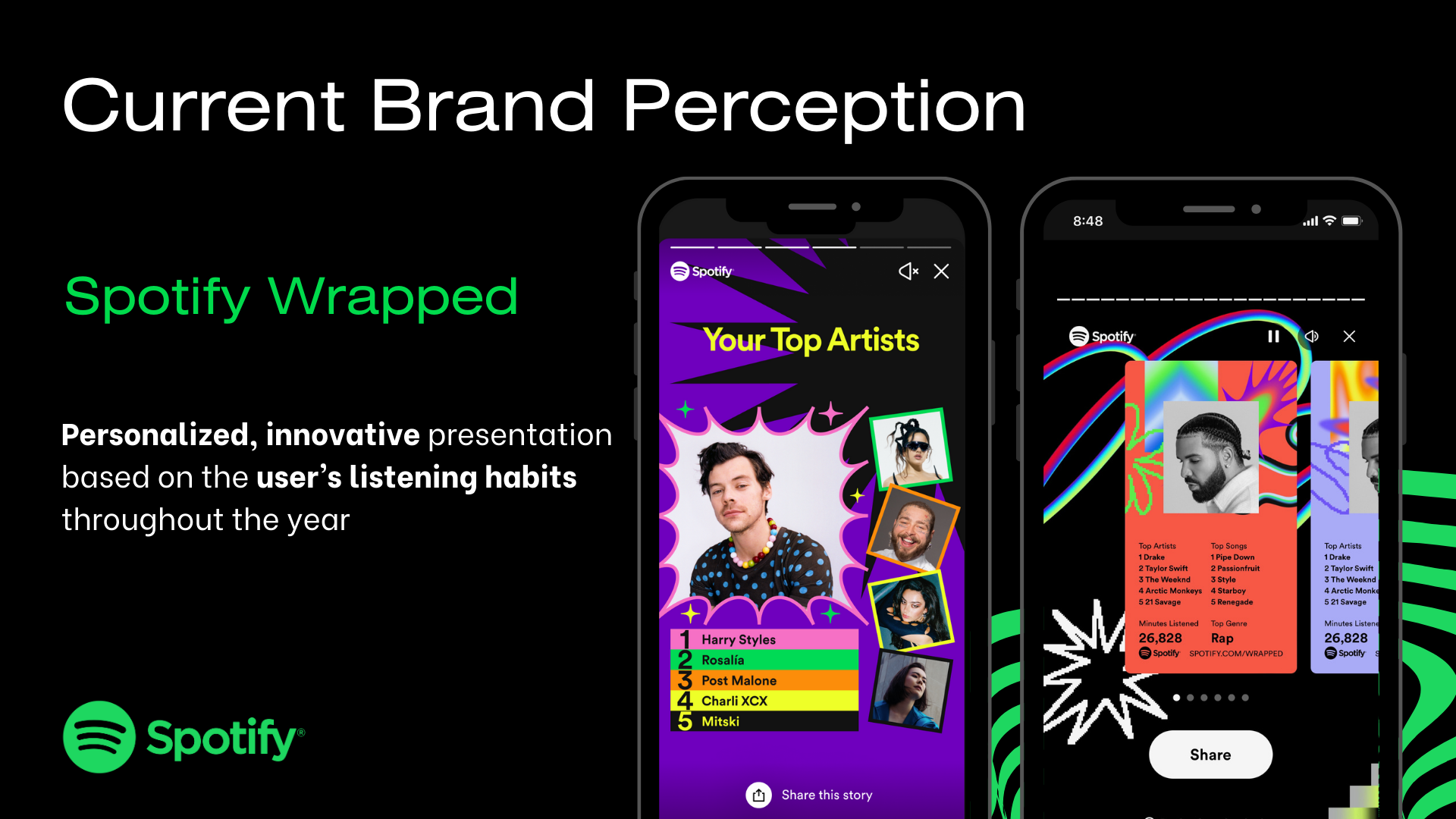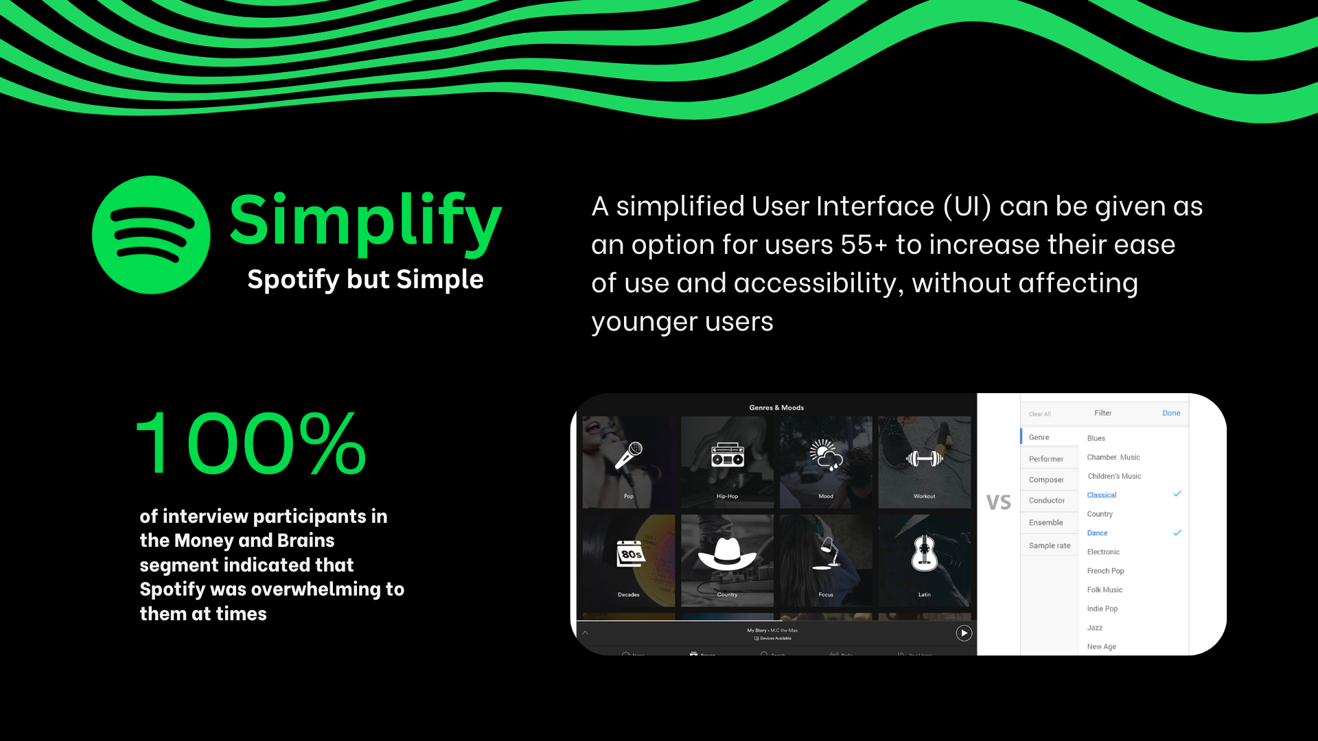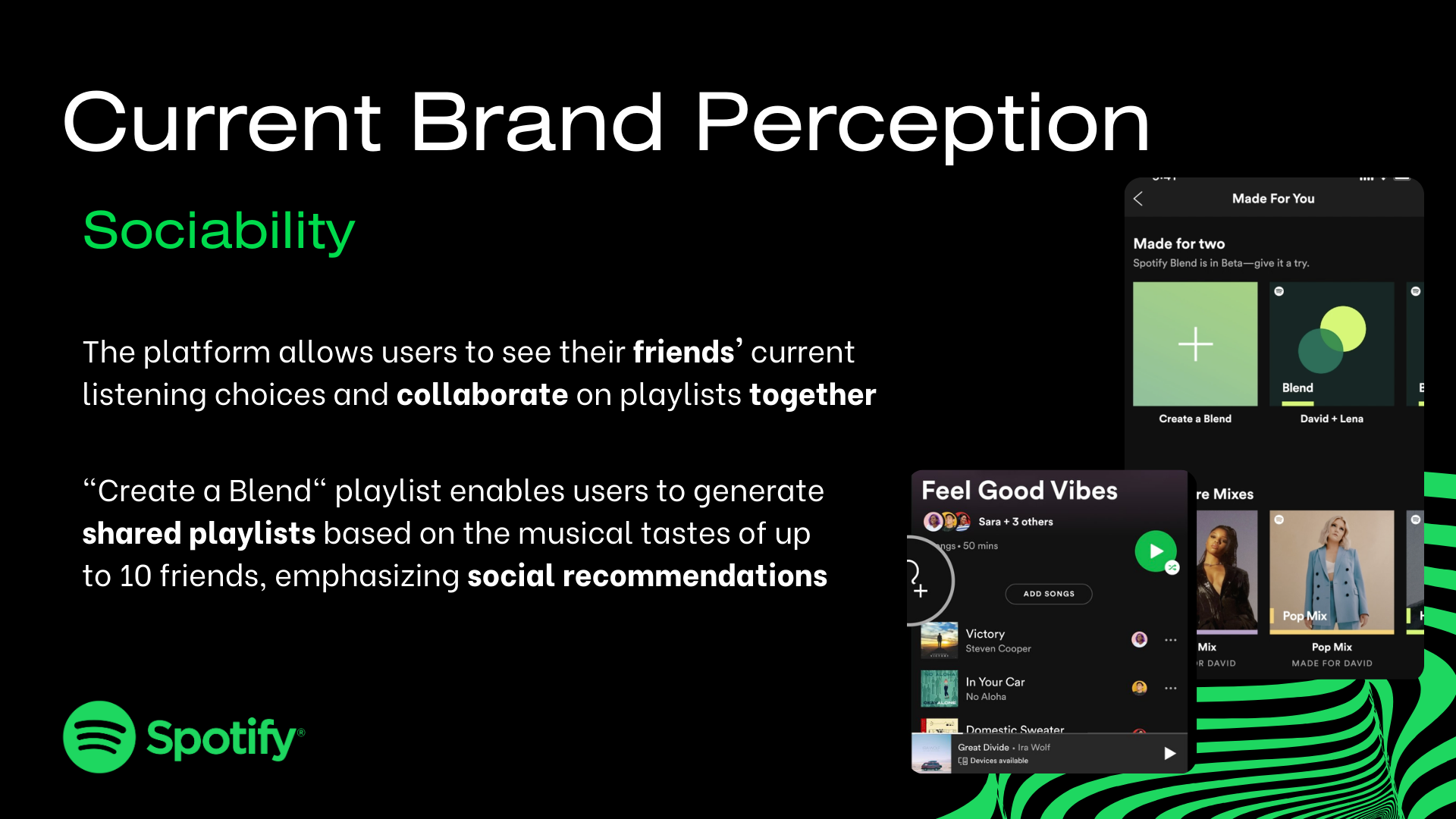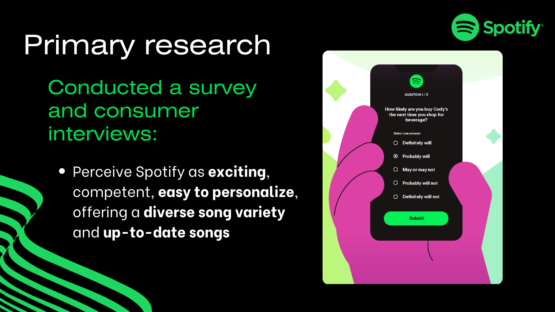 Rationale for choosing Spotify: Spotify is one of the world’s leading music streaming platforms, and its global, diverse user base of 453+ million users provides a particularly compelling subject for our consumer profile and brand analysis report. Younger customers in particular have a strong connection to the Spotify brand, using its capabilities to create playlists, share music, and connect with friends. A user’s Spotify profile harnesses valuable demographic data unique to a consumer’s personal identity, taking on a similar role as a social media platform. However, there is a gap in Spotify’s customer base, which is composed mainly of individuals under the age of 35. Our team explored why older generations are not using Spotify and what specialized features might allow them to capture this segment.
