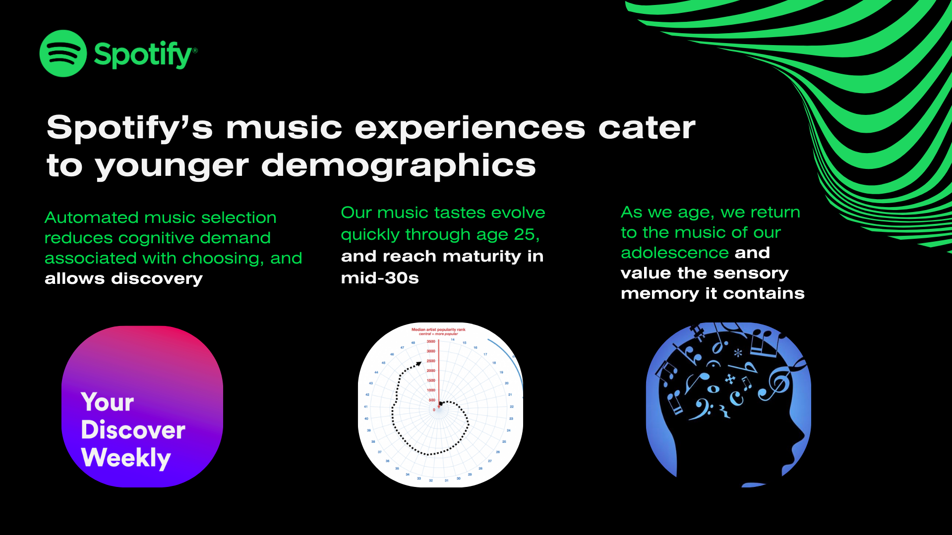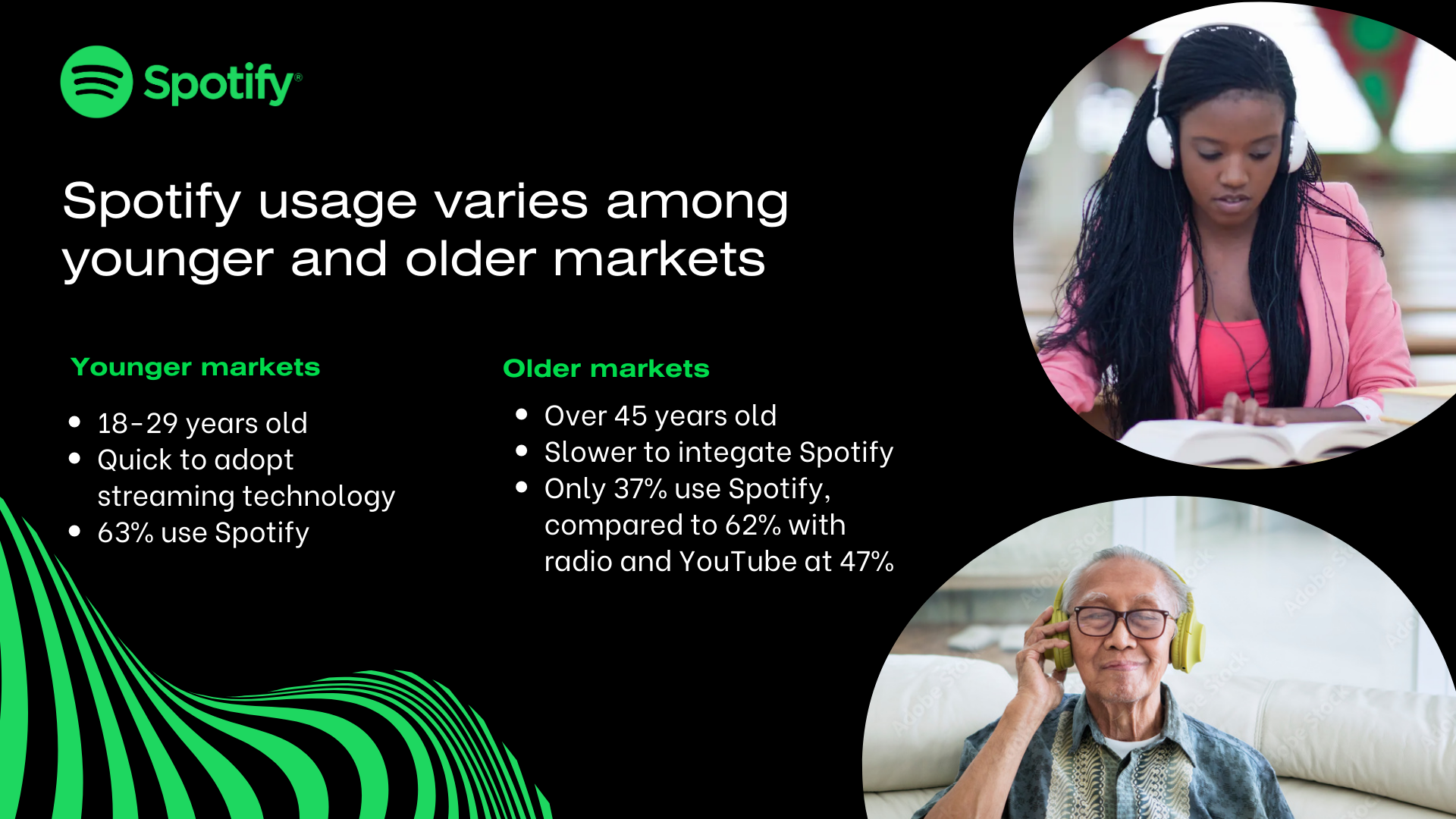 Despite Spotify’s massive global user base of over 453 million users, the majority of customers are under age 35. Older generations remain an untapped opportunity, presenting unique challenges and preferences in digital music consumption.