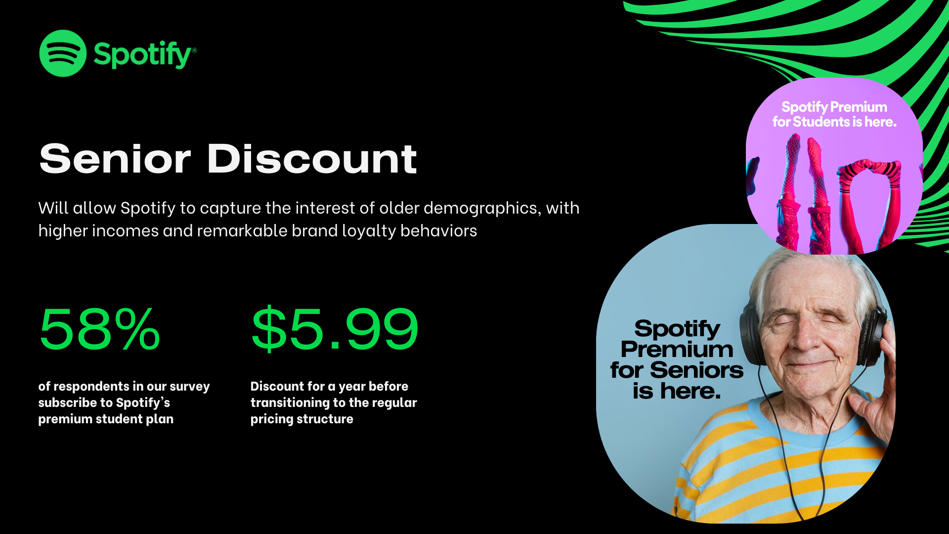 How Spotify can attract older generations via pitch control, additional product features, etc. given that the current market is composed of users under the age of 35.